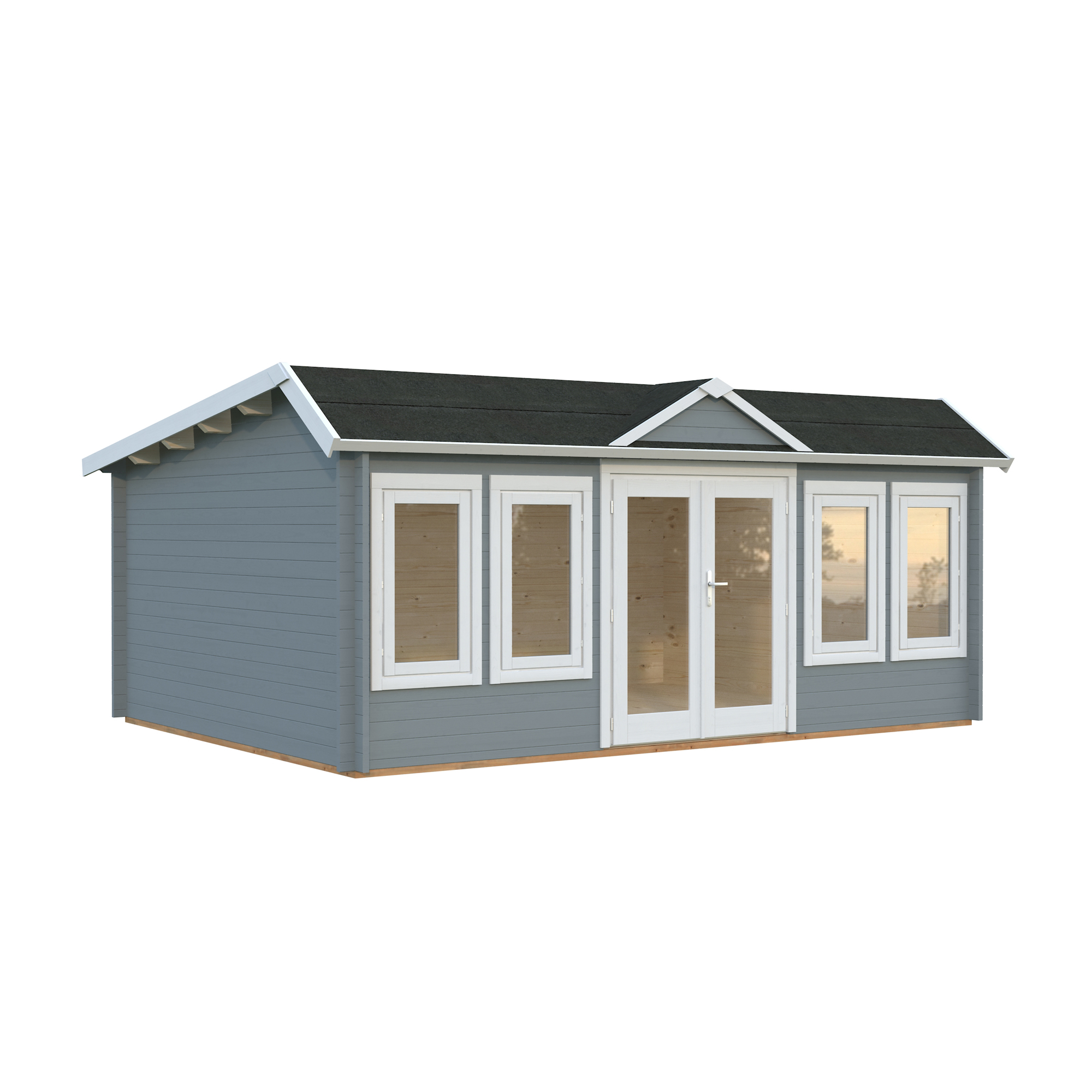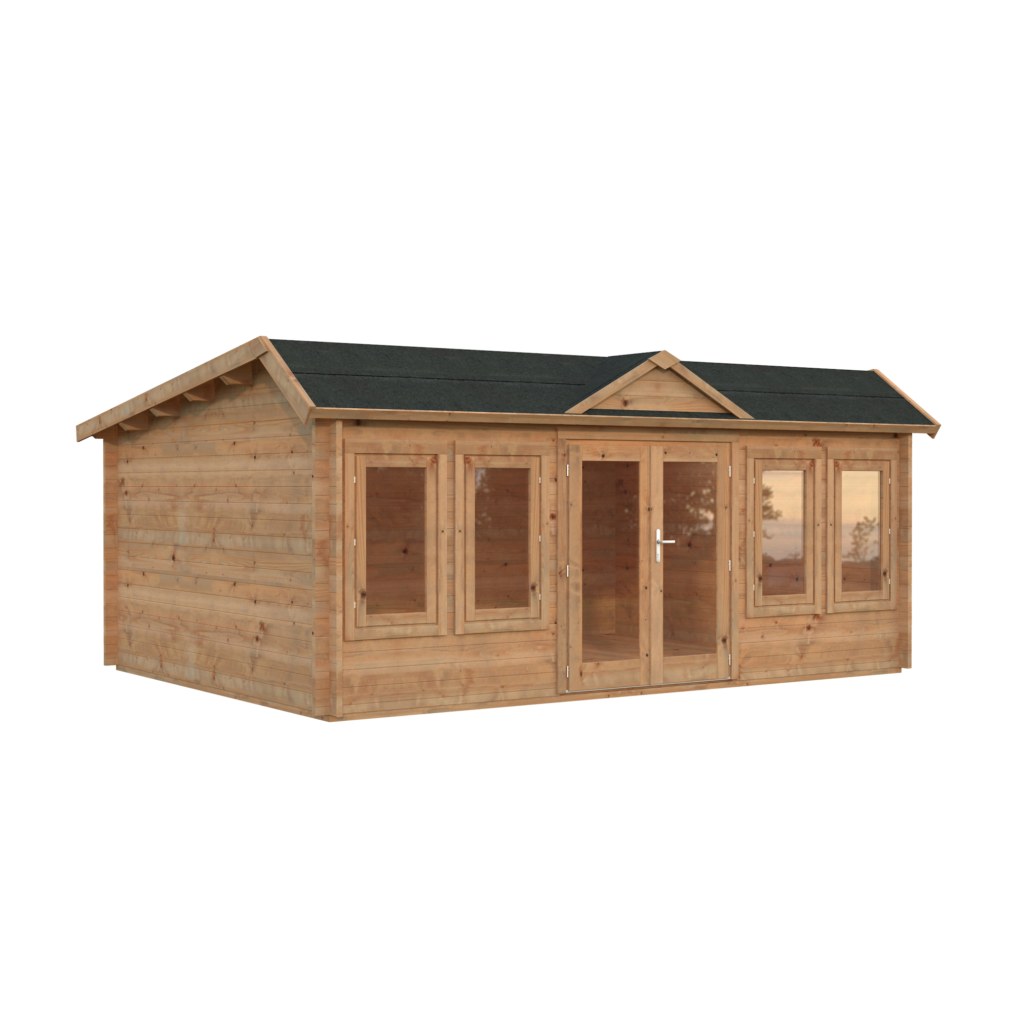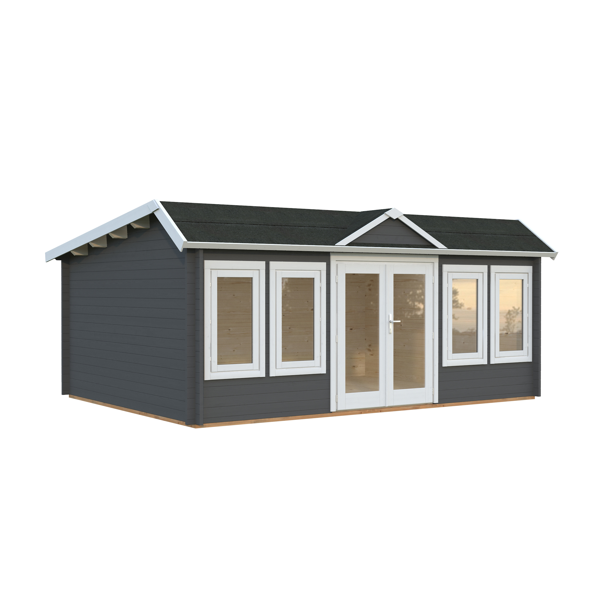 Palmakos stuga Claudia 19,4 m2 visar upp en takdesign i klassisk klockhusstil. Medan många kunder uppskattar det eleganta taket i viktoriansk stil, föredrar andra ett enklare topptak. Av denna anledning är monteringen av takkupan valfri.