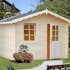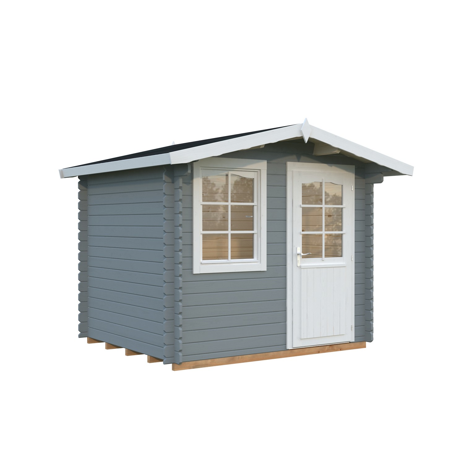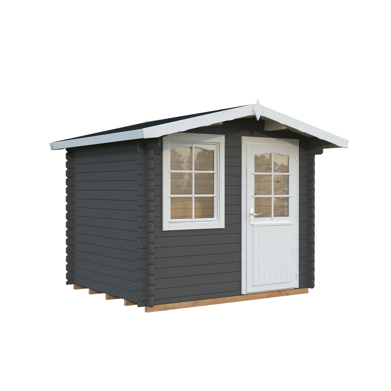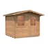 Stugan Heidi från Palmako är en modern knuttimrad stuga med ett stort fönster som ger ett härligt ljus i stugan. Även dubbeldörren har fönster ända ner till golvet, vilket ger ett ännu större ljusinsläpp och gör det möjligt att öppna upp stugan och sudda ut gränsen mellan inne och ute. En modern liten pärla som skapar ett perfekt utrymme för att samla nära och kära i din trädgård. Passar även perfekt som gästhus eller båthus.