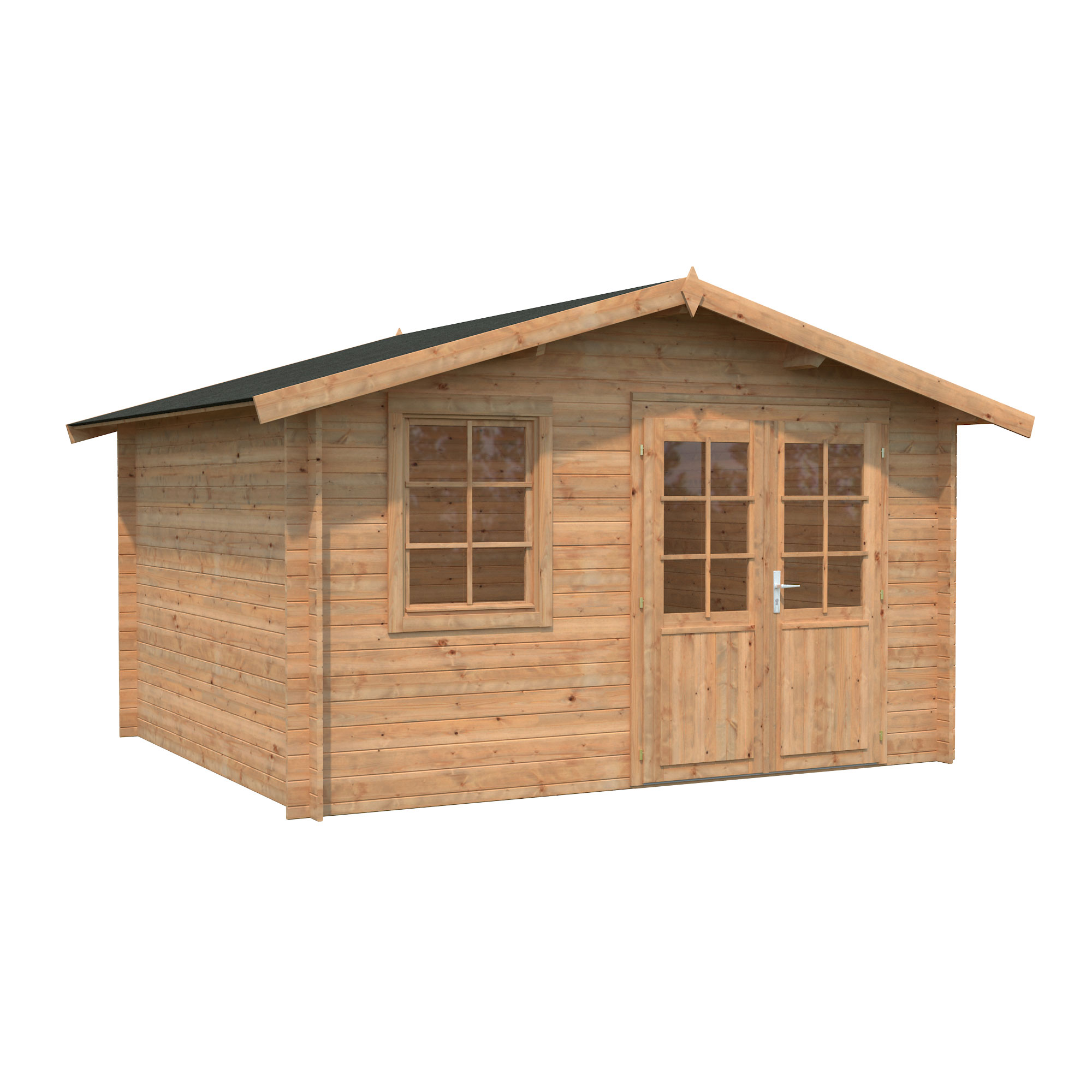 OBS!Huset levereras omålat! Takbeläggning, golv och grundbjälkar ingår ej i leveransen.