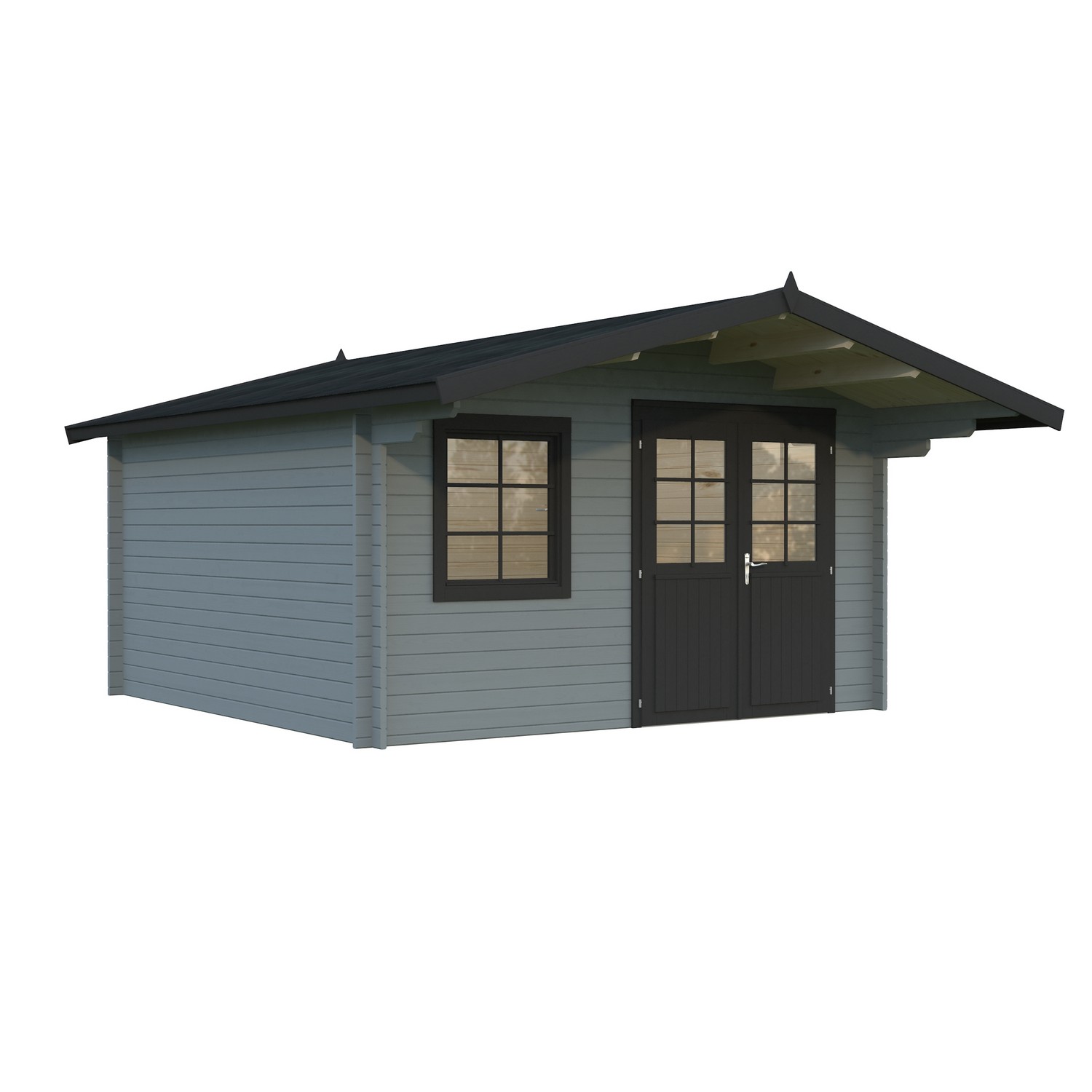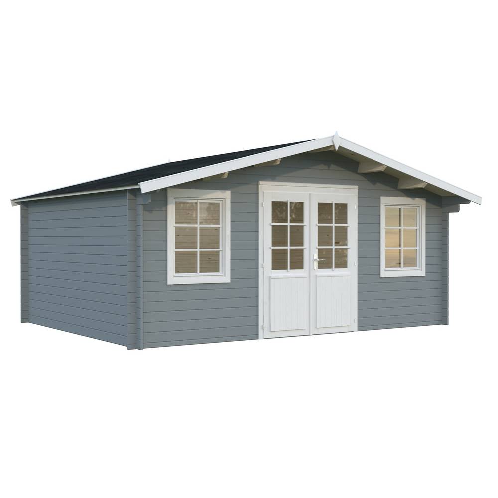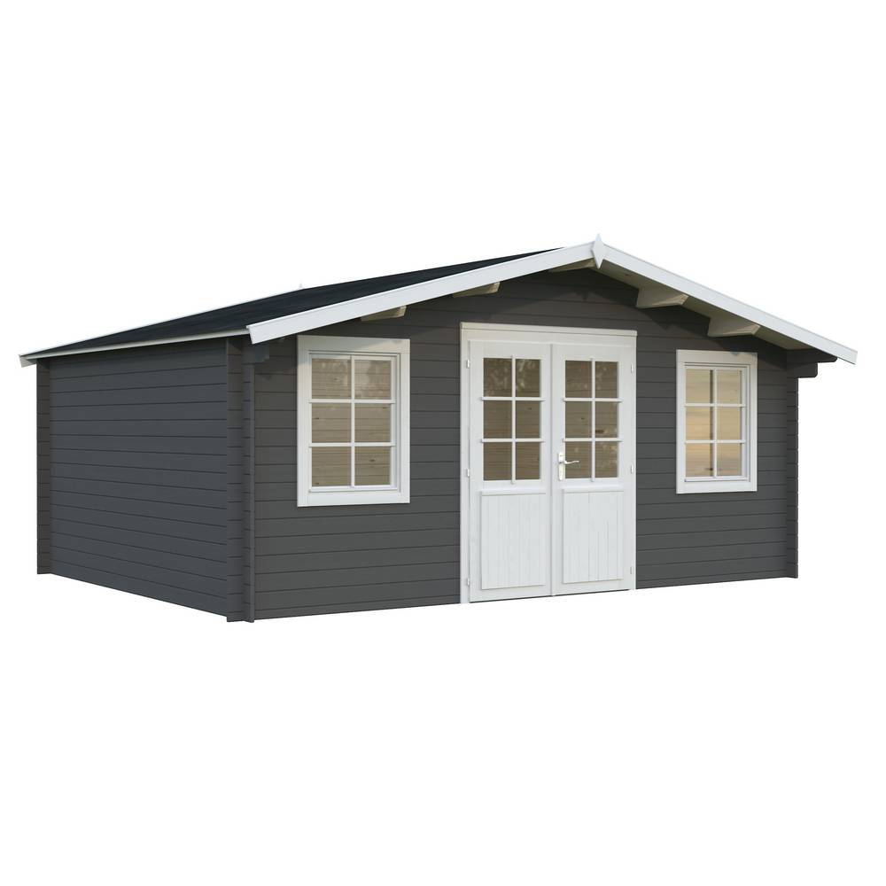 Uthuset Elsa med det flacka taket och raka linjerna skapar ett modernt uttryck och blir ett stilfullt inslag i din trädgård. Uthuset knuttimras med 28mm tjocka väggar och har en glasad dubbeldörr med cilinderlås. Stugan är tillverkad i långsamtväxande nordisk gran, ett hållbart material med hög kvalitet och särskilt anpassat för de svenska tuffa väderförhållandena. Att knuttimra är det mest traditionella sättet att bygga stugor och har fortfarande många fördelar som exempelvis att du helt slipper skruvar och spik för att bygga ihop väggarna.