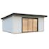 Stugan Lea med raka linjerna skapar ett modernt uttryck och blir ett stilfullt inslag i din trädgård. Stugan knuttimras med 44mm tjocka väggar. Med den 265cm breda dörröppningen kan du sudda gränsen mellan inne och ute. En modern liten pärla som skapar utrymme för att samla nära och kära i din trädgård.