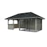 Tillverkad av nordisk gran med 120x120 mm starka limträstolpar och 19 mm takbrädor. Låsbara skjutdörrarna i 24 mm härdat dubbelglas (4 mm härdat glas - 16 mm luftspalt - 4 mm härdat glas) monterat i solida aluminiumprofiler. 28 mm väggstockar.