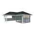 Taktäckning, golv och träbalksgrund ingår inte men kan köpas som tillval.