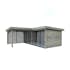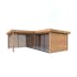 Tillverkad av nordisk gran med 120x120 mm starka limträstolpar och 19 mm takbrädor. Låsbara skjutdörrarna i 4 mm härdat glas och aluminium. 28 mm väggstockar.