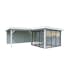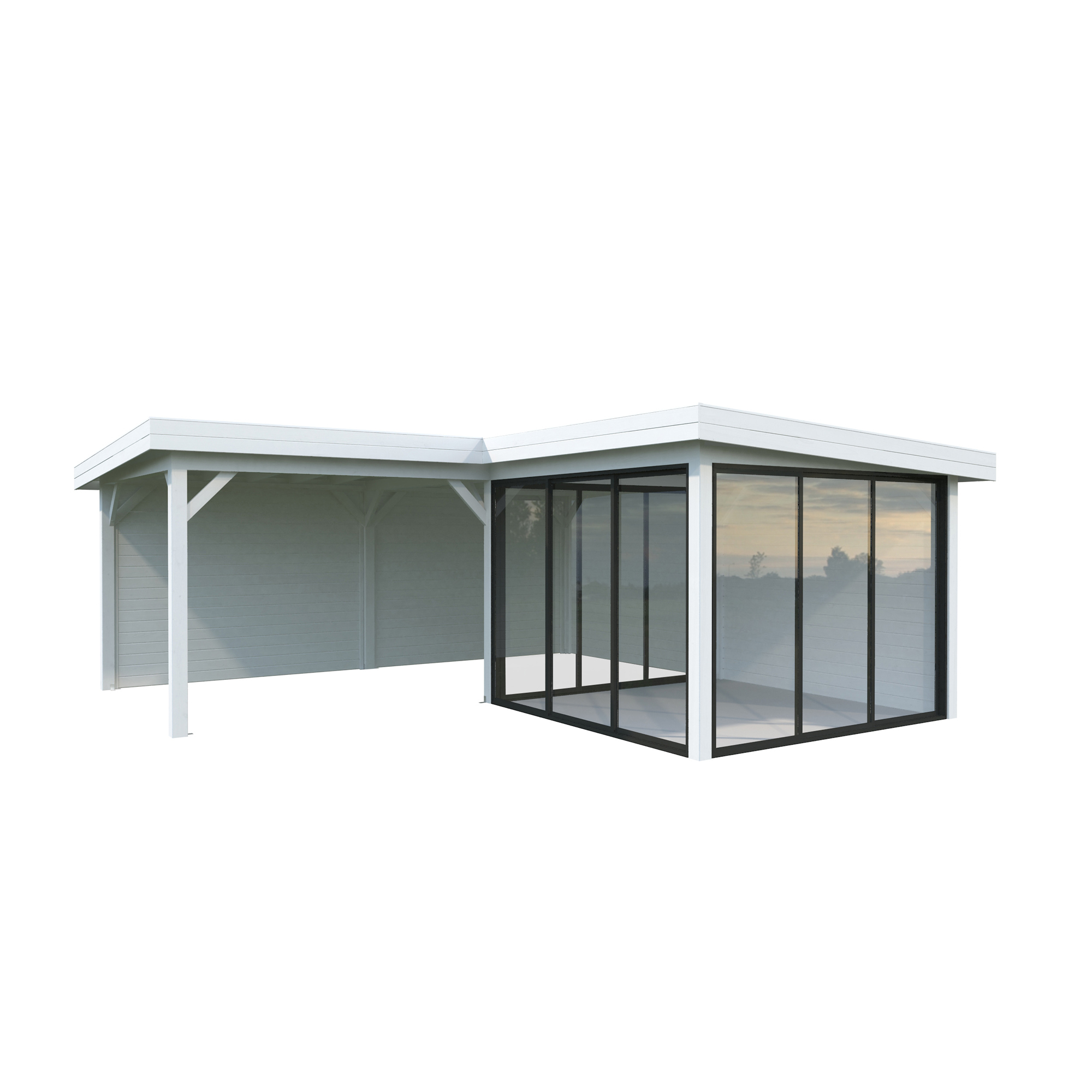 Tillverkad av nordisk gran med 120x120 mm starka limträstolpar och 19 mm takbrädor. Låsbara skjutdörrarna i 24 mm härdat dubbelglas (4 mm härdat glas - 16 mm luftspalt - 4 mm härdat glas) monterat i solida aluminiumprofiler. 28 mm väggstockar.