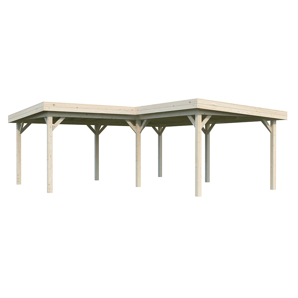 Stugan är tillverkad i långsamtväxande nordisk gran, med 120x120 mm starka limträstolpar och 19 mm takbrädor, ett hållbart material med hög kvalitet och särskilt anpassat för de svenska tuffa väderförhållandena.