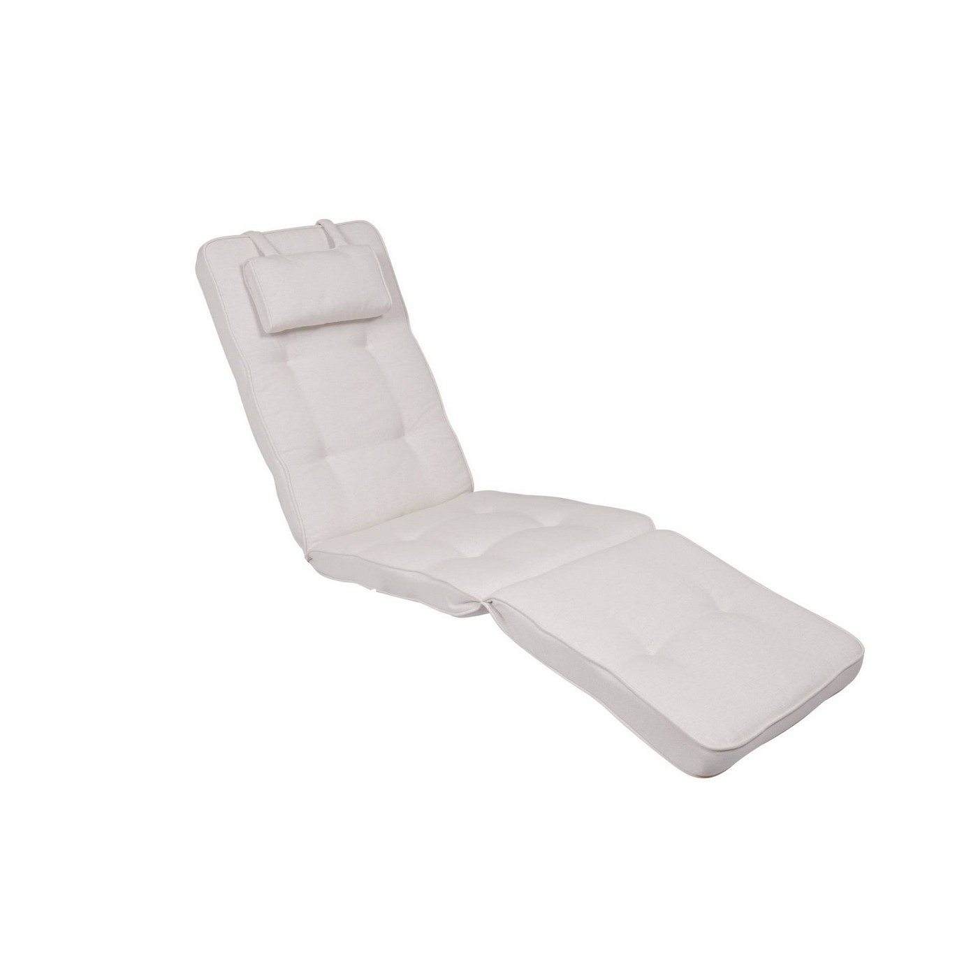 Dyna i kraftig Dralon/Akryl (90%) och Linne textil(10%) med en miljövänlig coating som gör att dynan är vattenavvisande. Fibervadd svept runt en tjock polyeterkärna för mjuk komfort. Boxsydd med nackkudde
