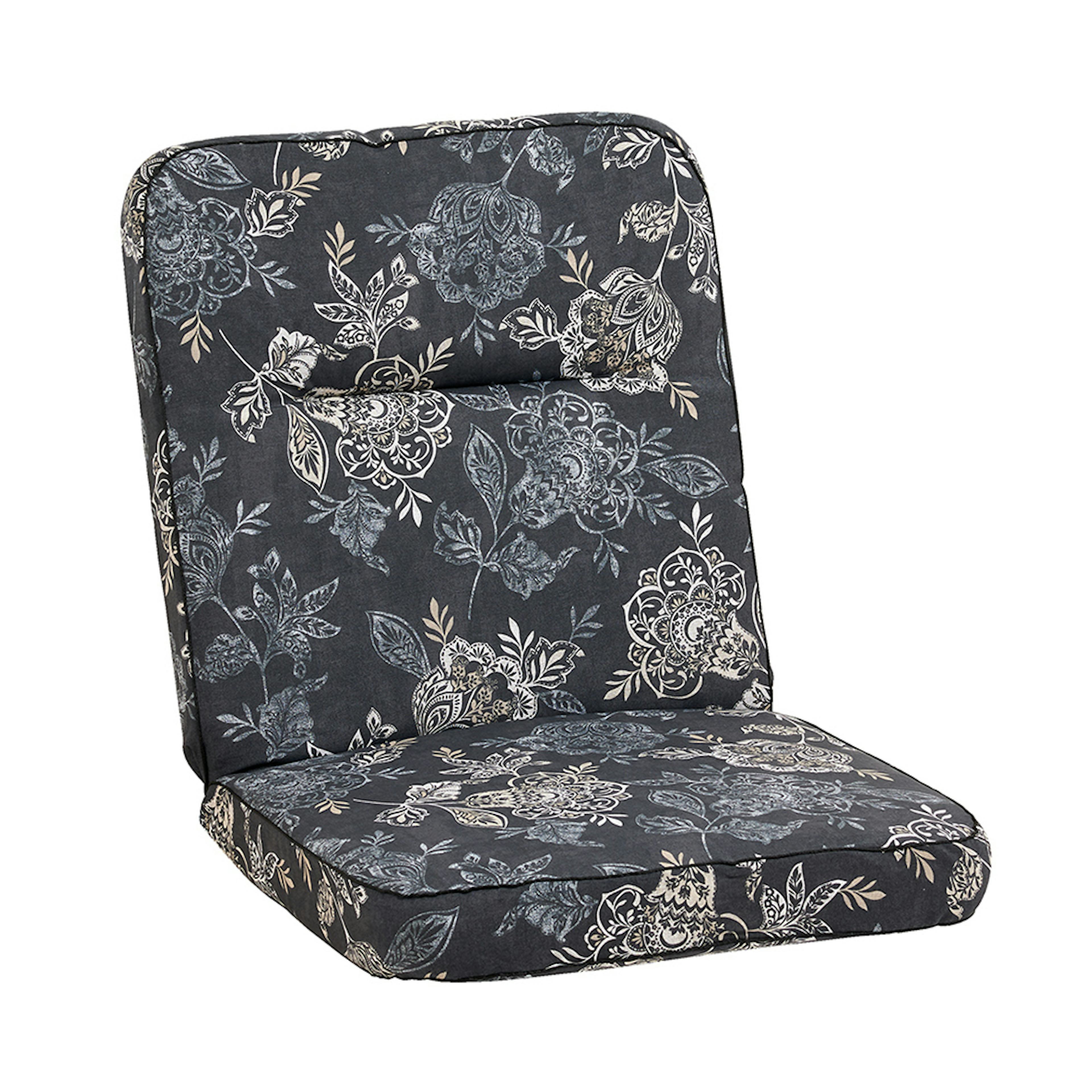 Fåtöljdyna Lågvik Woodline från Fritab. En låg boxsydd dyna tillverkad i bomull. Dyna med fibervadd svept runt en tjock polyeterkärna för mjuk komfort.