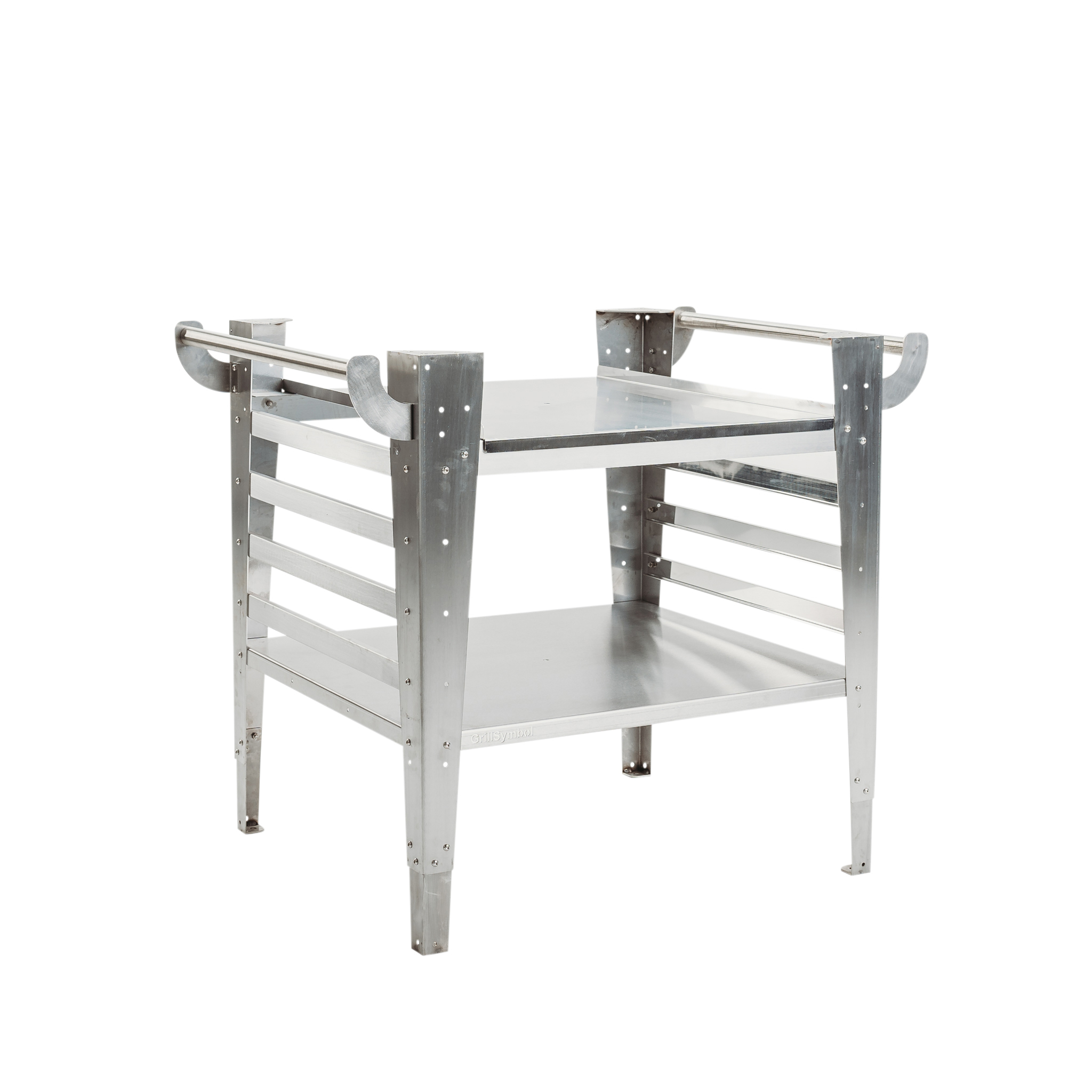 Pizzabord från GrillSymbol Baso som kan användas med GrillSymbols pizzaugn Pizzo. Bordet är designat utifrån funktionalitet. Det finns 2 nivåer där du kan förvara ved och placera tillbehör. Mindre tillbehör kan hängas på handtagen.