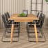 Matgrupp Julle från Venture Home. Matbord med en bordsskiva i akacia. Matchas med 6 stycken Minos matstolar med stolsben i stål och sits i rep.