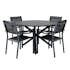 Matgrupp Alma från Venture Home. Matbord med en bordsskiva i aluminium. Matchas med 4 stycken Copacabana matstolar med en ram i aluminium.