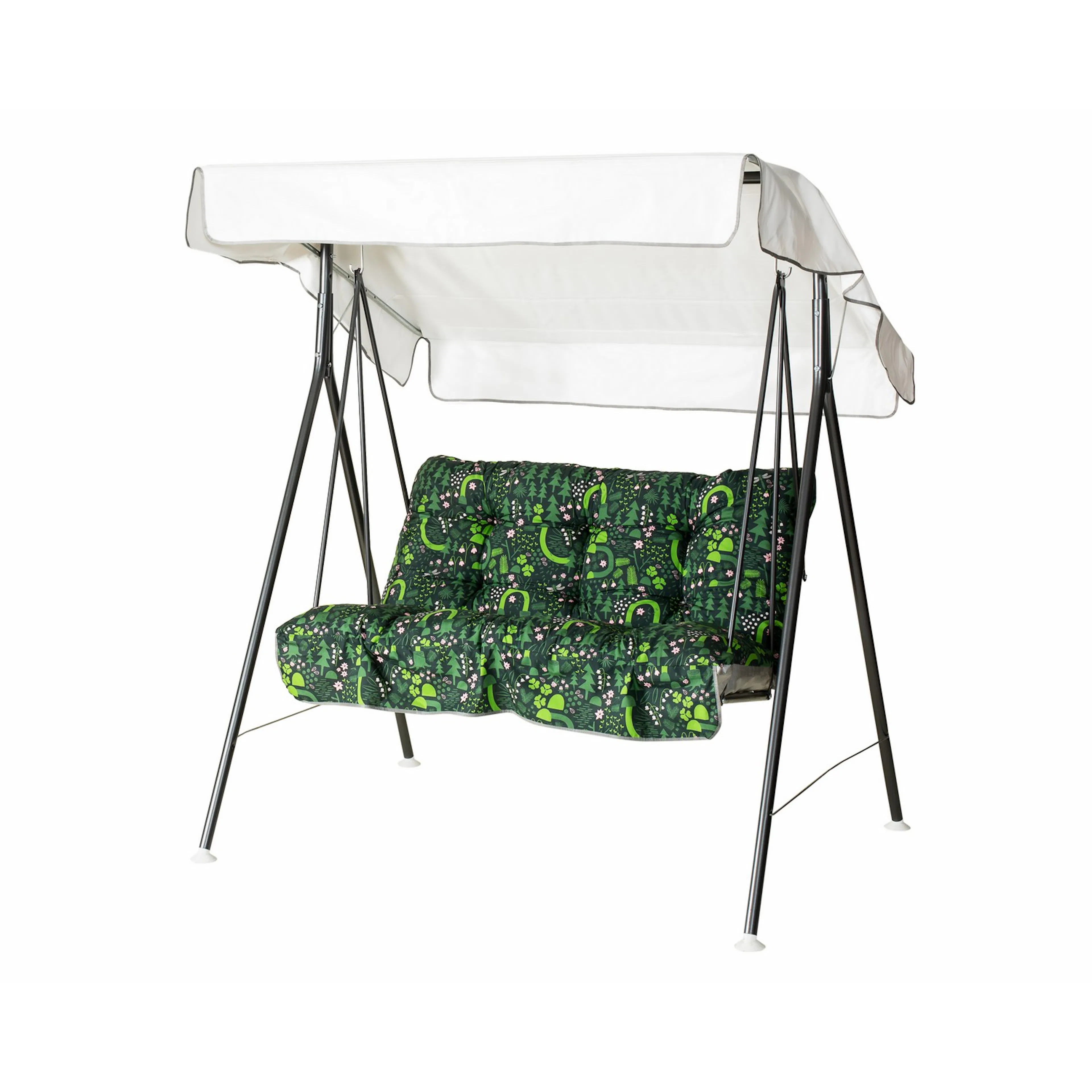 | Material | Pulvermålad stålrörsstomme, förzinkat metallgaller, textilen en blandning av bomull/ polyester, taket pvc- plast., Stål |