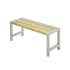 Café är en bänk från PLUS med en ram av stål och plankor av furu/gran. Plankor: 42x116 mm.