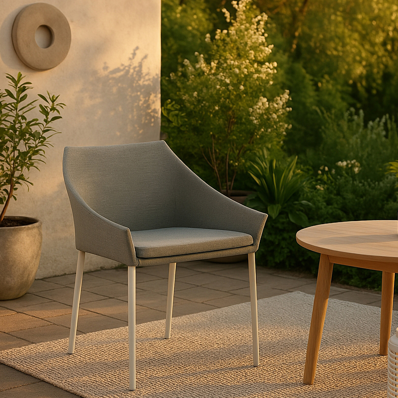 En smakfull och bekväm stol i grått som passar perfekt till alla middagar på altanen eller uteplatsen. Matcha med ditt favoritbord och du är redo! Spoga har en tidlös design med neutrala kulörer som gör att stolen kan användas under en längre tid.