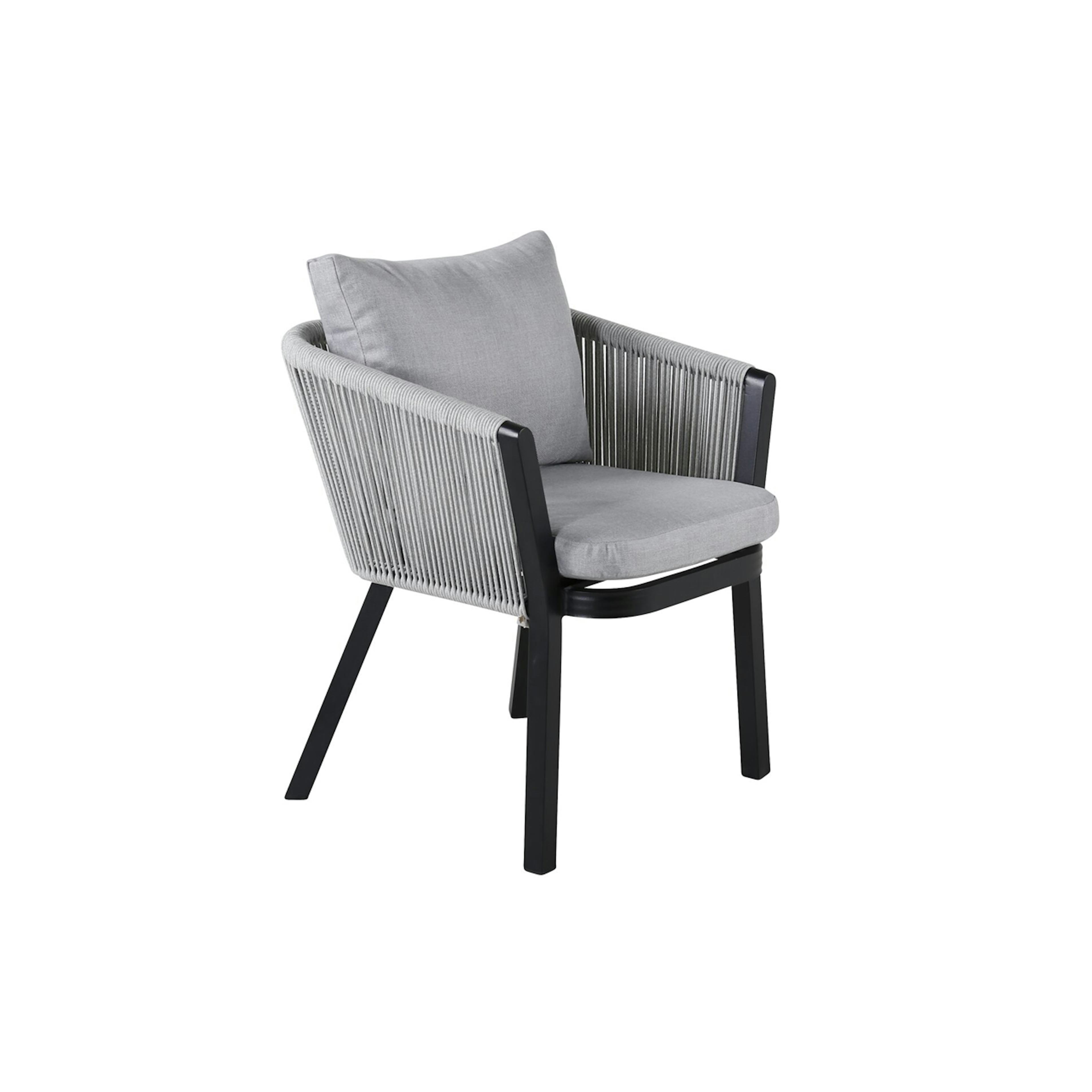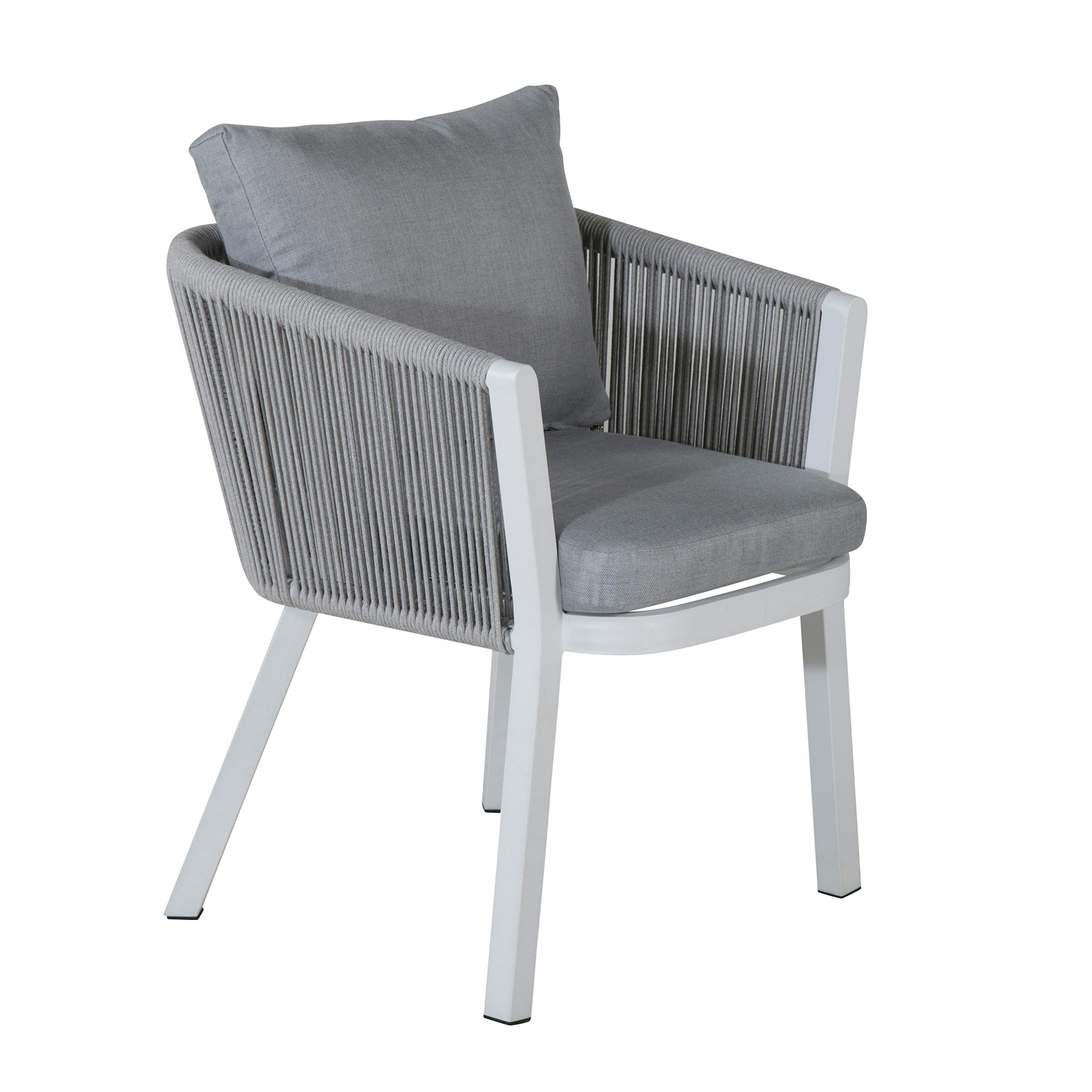 Matstol Virya från Venture Home. Tillverkad i aluminium och rep. Fungerar utmärkt som del i en matgrupp eller ensam som en vacker detalj. Ingen montering krävs.