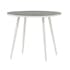 Matbordet har en grå bordsskiva i aintwood och ett klassiskt underrede i vit aluminium.